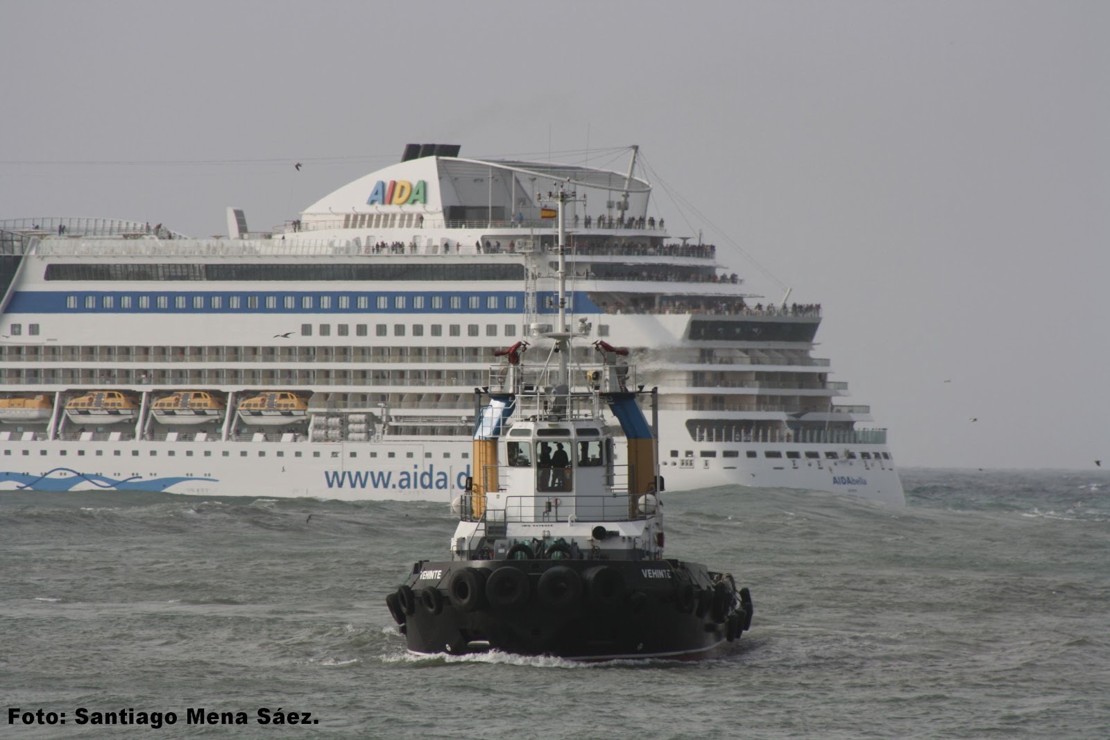 mismo está vigilado por los dos remolcadores por si se produjese alguna complicación.