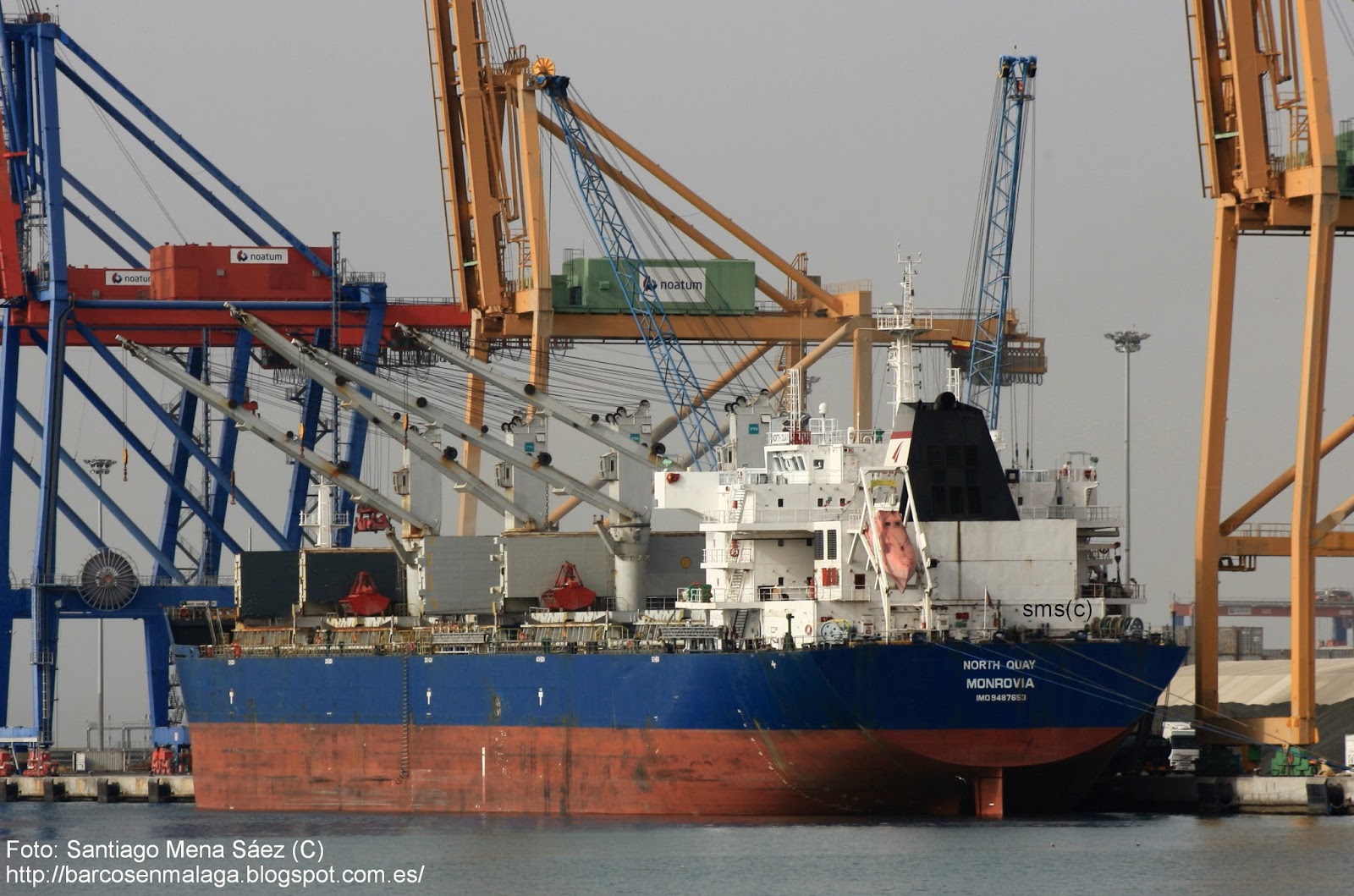 El buque granelero North Quay llegó en lastre desde Dakar (Senegal) el día 19 de Julio. Fondeó a las 15:00 horas en el sector A de la bahía, más exactamente en la posición 36º 41′ 31″ N 04º 23′ 32″ W. Al día siguiente levantó el fondeo, entró a puerto a las 19:20 horas y atracó en el muelle 9.2, norayes 24-35. Consignado por Servimad Global, S.L. cargó en sus bodegas 37.750 toneladas de clinker. Tres días después soltaba amarras a las 16:50 horas y navegaba con destino Luanda (Angola), finalizando de esta manera su primera escala en el puerto malagueño.